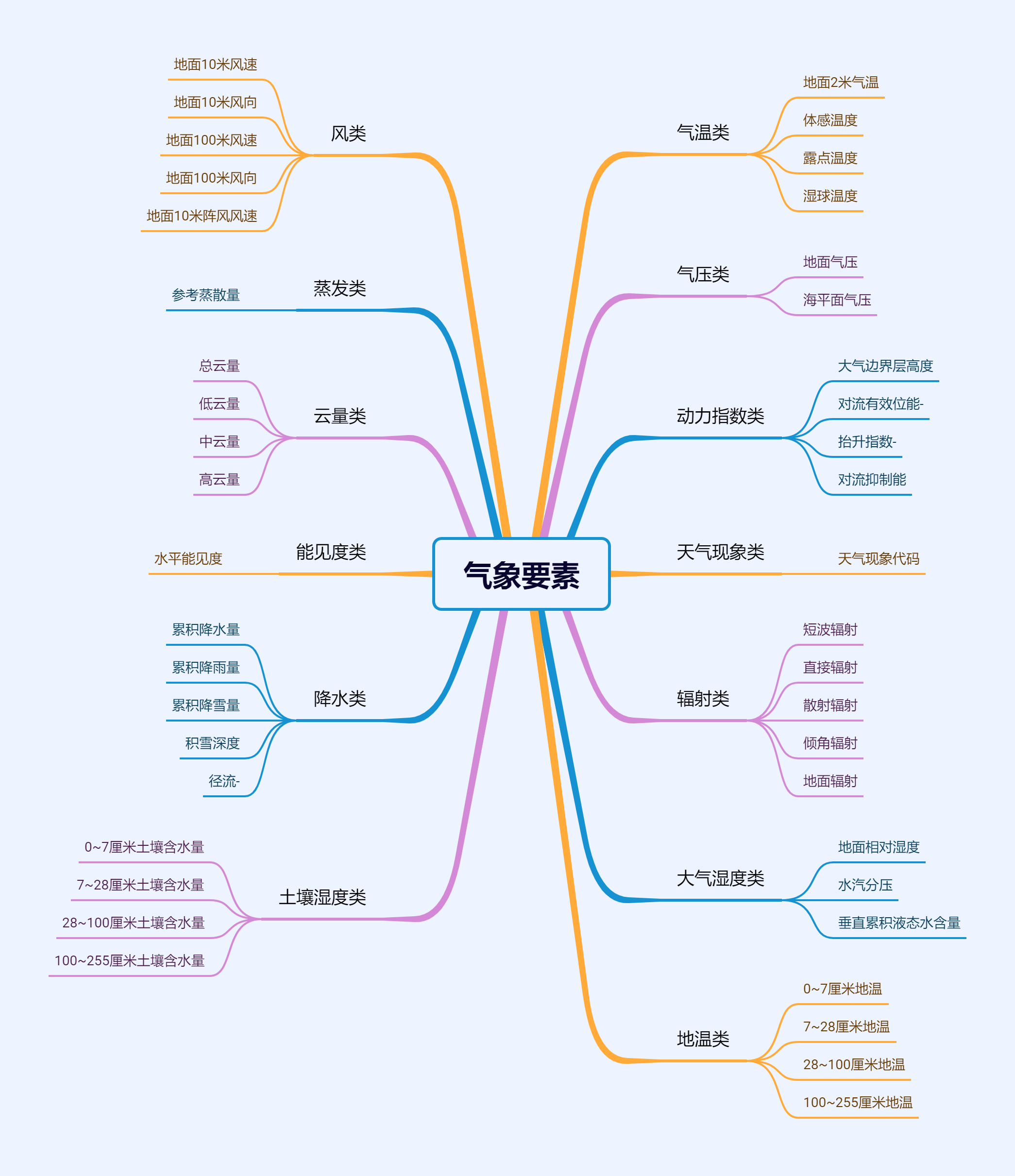 我们的历史天气和气象预报数据集主要包含以下气象要素:
